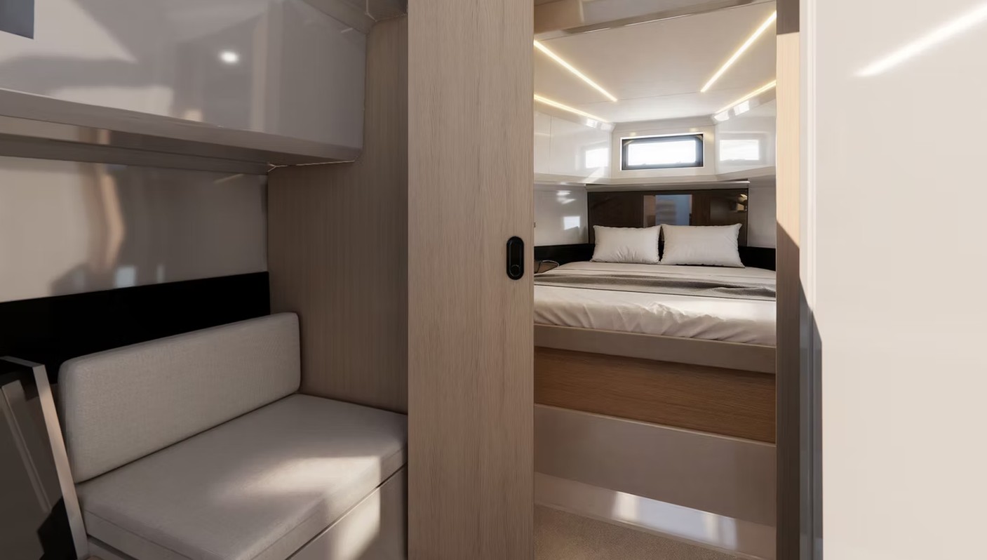 De Antonio D36 CABINE — Nous parlons ici d'un bateau d'exception, un modèle qui a marqué un véritable tournant dans le monde nautique. Ses solutions de pont innovantes, son espace intérieur confortable, sa coque, son moteur puissant ainsi que la qualité et le soin apporté au moindre détail en font un modèle unique. Depuis son lancement, il ne passe pas inaperçu. Original et incomparable, découvrez-le.