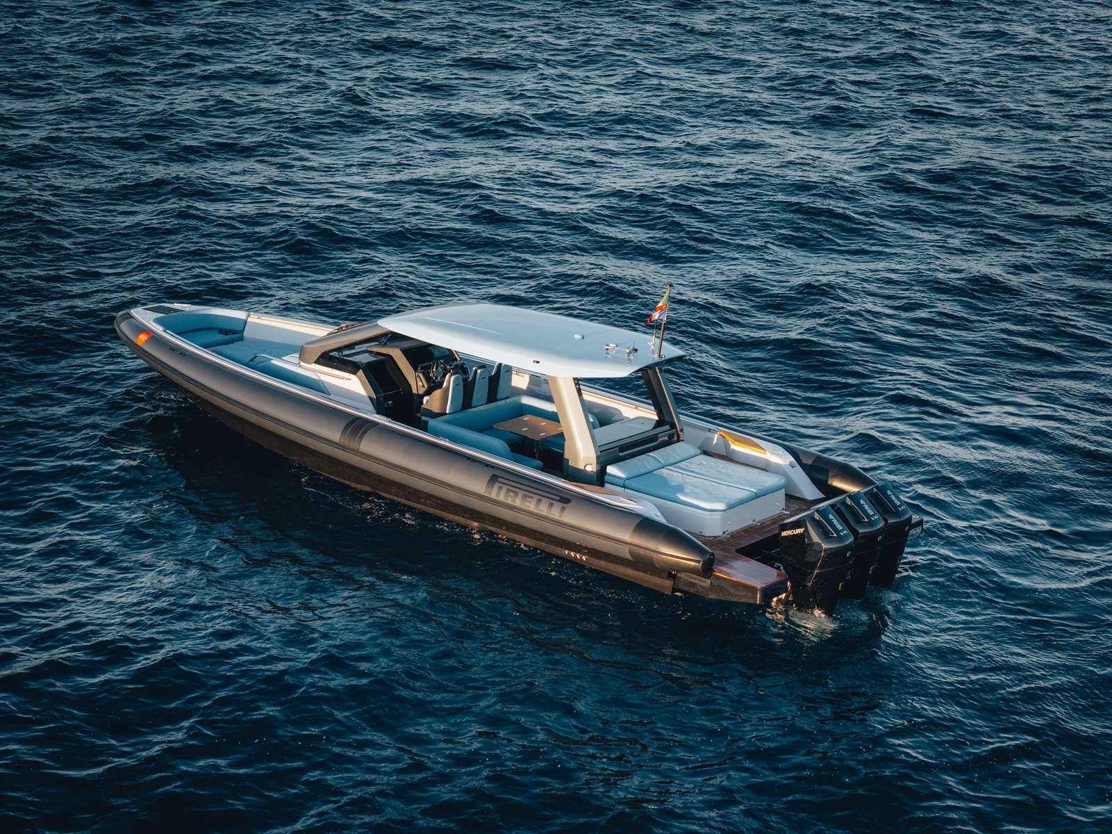 Le PIRELLI 47 réinvente l’art de vivre en mer avec deux versions d’exception : Open, dotée d’un hard-top prolongé offrant ombre et liberté, et Fermé avec panneaux vitrés coulissants créant un véritable espace de vie protégé. Dans les deux configurations, la circulation walkaround assure un accès fluide du pont avant à l’arrière, pour un confort et une élégance incomparables.