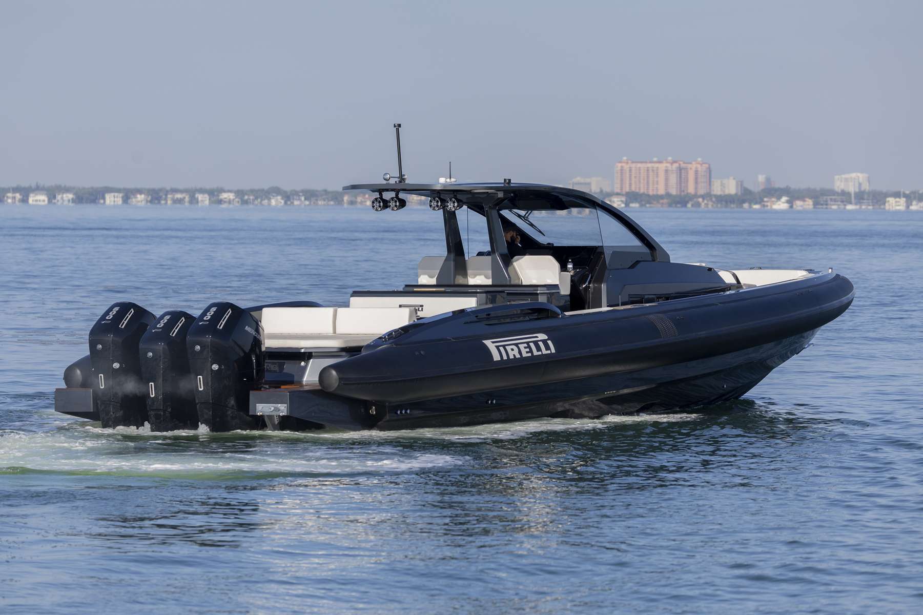 Le PIRELLI 50 hors-bord offre une navigation fluide et réactive, pensée pour ceux qui recherchent puissance et contrôle. Ses moteurs nouvelle génération assurent précision, stabilité et confort même à haute vitesse. À l’avant, un véritable lounge avec double sofa et large bain de soleil invite à la détente, tandis que les intérieurs raffinés et les passavants sécurisés allient fonctionnalité et style italien inimitable.